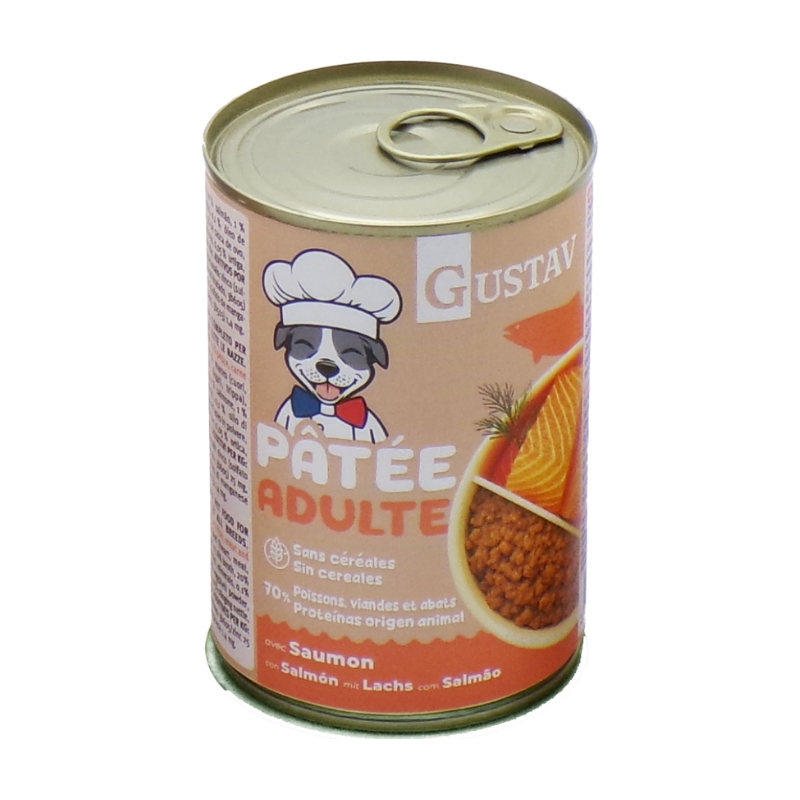 Riche en protéines et sans céréales, la pâtée GUSTAV pour chien offre une excellente appétence. Cet aliment complet peut être servi seul, en bi-nutrition ou en complément dans des jouets d’occupation ou sur un tapis de léchage. Un allié idéal pour stimuler l’activité mentale de votre chien.
