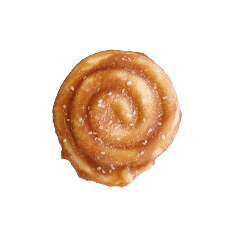 Pain au raisin à mâcher au poulet d’une dimension de 9cm. Ce produit est un complément alimentaire en plus des repas quotidien.
