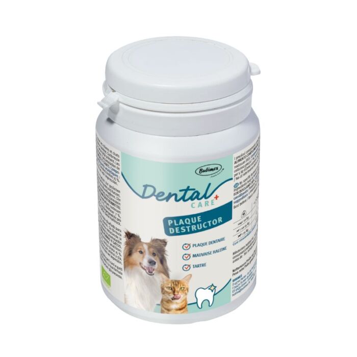 Plaque Destructor est un produit innovant conçu pour les chiens et chats adultes présentant de la plaque dentaire, du tartre ou une mauvaise haleine. Sa formule spécifique contribue à réduire la plaque et à détruire le tartre déjà présent. Les précieux composants spécifiques combattent efficacement l’accumulation de plaques dentaires.