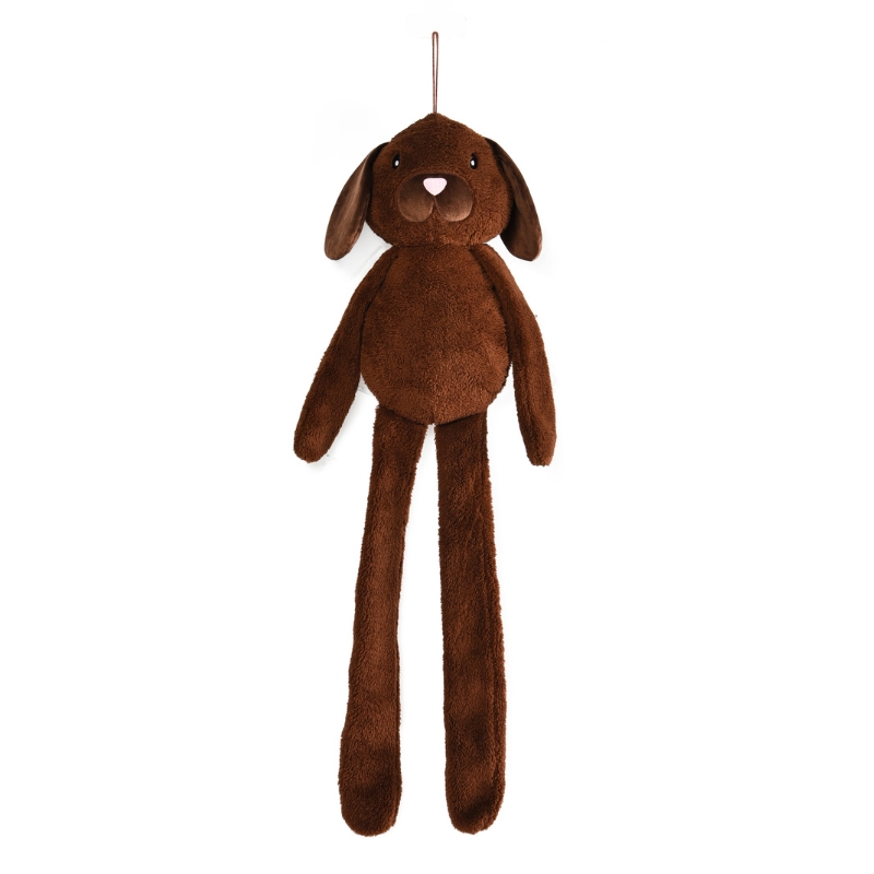 Peluche XXL en forme de chien de coloris marron. Peluche en tissu polyester doux de 88cm muni d’un squeaker et d’une poche dans le dos pour insérer une friandise ou un accessoire.