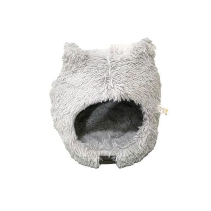 Corbeille tête de chat, 45cm, fourrure gris clair
